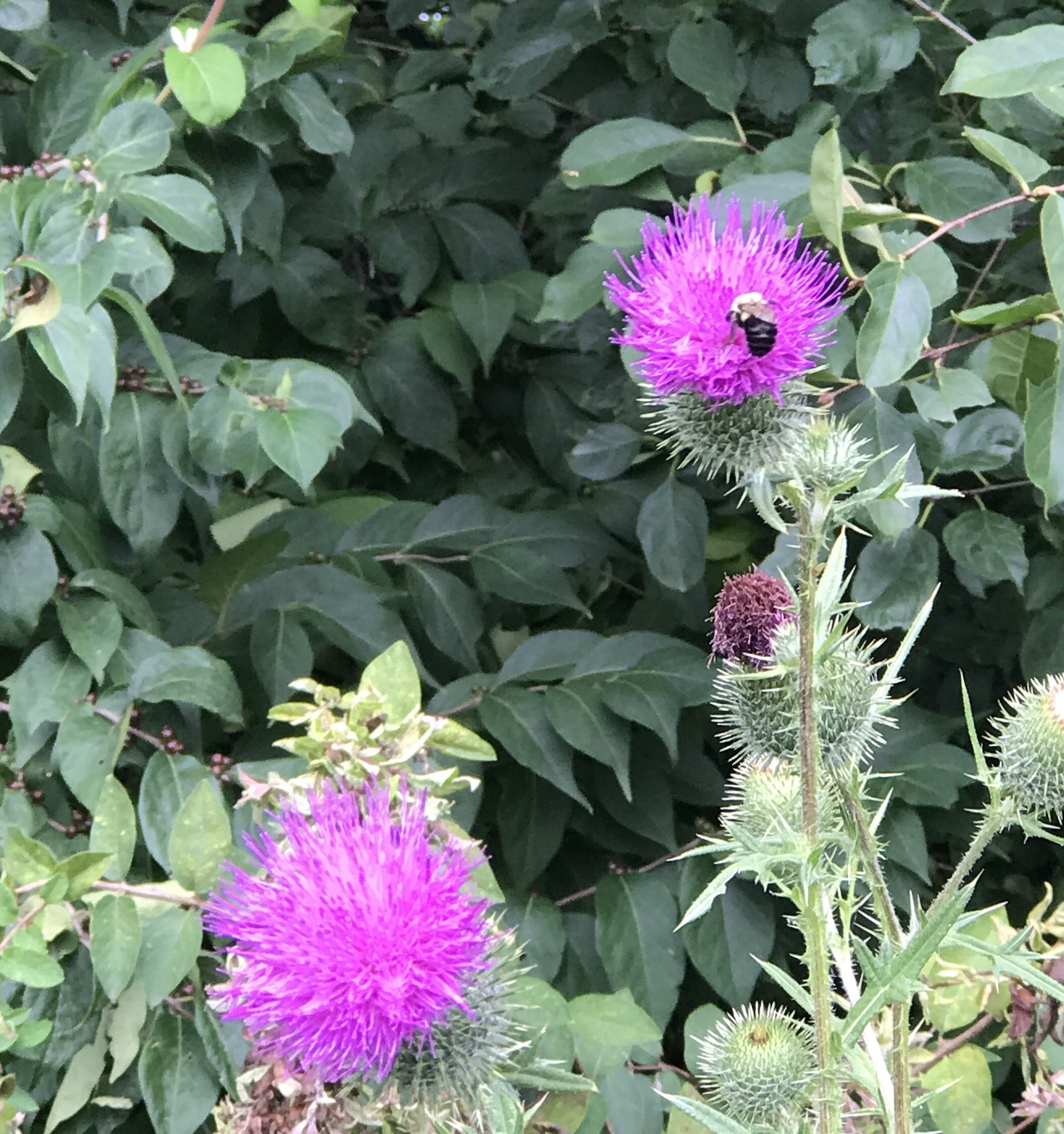 A couple of bees stopped by for breakfast this morning, on one of our sunflowers… Been a great summer in our yard, for the insects… The good ones, anyway…